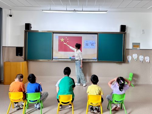 活動中引導(dǎo)孩子們認(rèn)識我國的名稱、認(rèn)識我國國旗等,并觀看了莊嚴(yán)肅穆的升旗儀式,了解升國旗時要立正站好,行注目禮。知道要熱愛祖國,為自己是中國人而自豪。