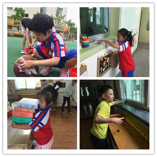 孩子們?nèi)雽W不知不覺快一個學期了,如何讓他們很好的適應學校生活,掌握基本的自理能力是我們本學期的主要目標。生活適應更要體現(xiàn)“生活化”,引導孩子在學校的真實情境中進行自理能力的培養(yǎng),是一個非常有效的途徑。每日晨間打掃,引導孩子擦洗桌椅柜子、分類收拾玩具、拖地、洗抹布;午飯時,指導孩子自己端飯、安靜進餐、愛惜糧食,自己擦洗餐盤;睡前指導孩子學習脫衣服和疊衣服,督促孩子養(yǎng)成練好的入睡習慣,起床后指導孩子自己穿衣服、疊被子。良好自理能力的養(yǎng)成,有效地促進了孩子的自律能力。